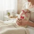 Flasche, Bezug aus Lammlocke, Herz aus Baumwolle, Schleife rot karriert